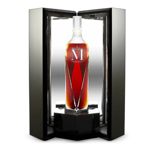 Macallan M Decanter, sits at the pinnacle of The Macallan 1824 Series. Created from the rarest whiskies at the distillery it is the most expensive whisky ever sold.*